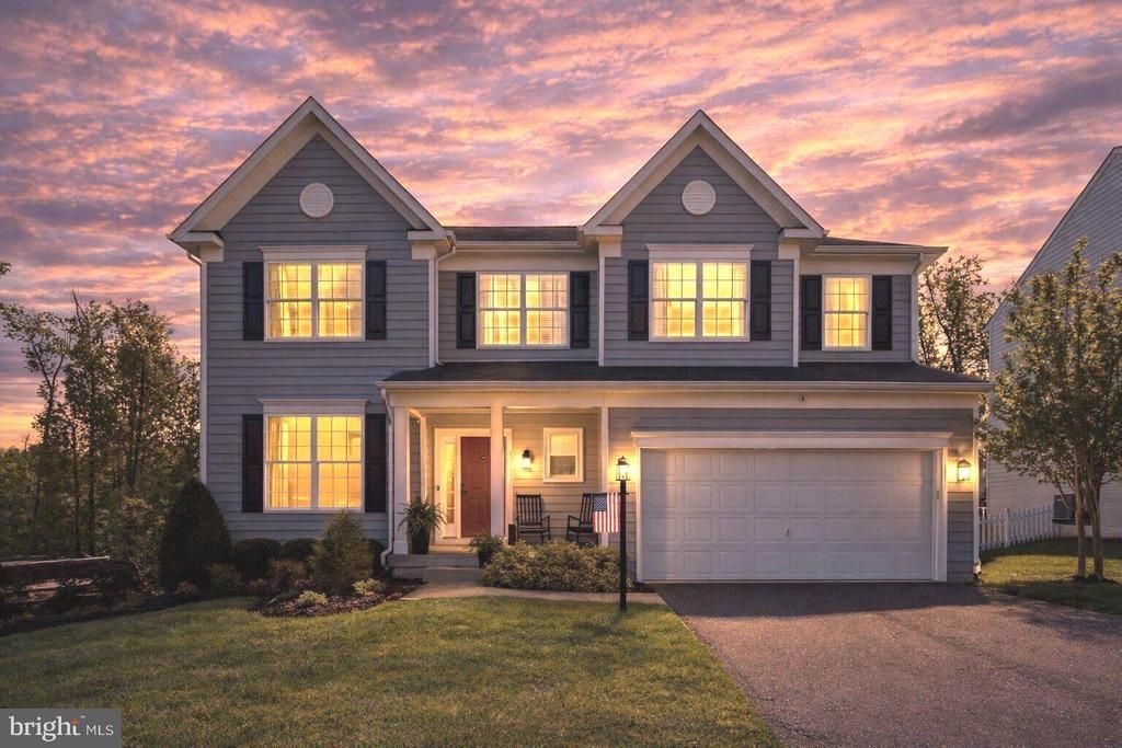 Welcome to this beautifully appointed home in sought-after Leeland Station—lovingly maintained and thoughtfully upgraded with designer touches by its original owners. Offering nearly 4,000 square feet of living space, this residence blends timeless design with modern enhancements throughout. Impressively, it was featured on the COVER and in the September 2020 issue of BETTER HOMES AND GARDENS magazine! From the moment you enter, you’ll notice the attention to detail. The main level features engineered hardwood flooring, designer paint choices, custom lighting, and elegant finishes. To the left of the foyer, the formal living and dining rooms are tastefully updated, creating inviting spaces for entertaining. The heart of the home is the stunning kitchen, complete with upgraded cabinetry, granite countertops, and an expansive island that comfortably seats six—accented by four stylish pendant lights. Stainless steel appliances include a gas cooktop and double ovens, custom backsplash, and a pantry to provide additional storage. The adjoining breakfast area, wrapped in windows, offers a delightful gathering space with a view to the tree-lined rear yard! A warm and inviting family room features shiplap, custom shelving, and beautiful lighting that elevate the design and function of the space. Comfort and ambiance are created by a gas fireplace with blower, while custom remote-controlled blinds let you decide how much natural light enters! Completing the main level, you'll find an attractive half bathroom appointed with beadboard and updated mirror, faucet, and lighting. Entering through double doors, the upper level primary suite is spacious and features a striking accent wall, two large walk-in closets, sitting area, and a luxurious en-suite bath complete with dual vanities, custom blinds, and shelving along with recently updated lighting, mirror/ medicine cabinets, and a modern frameless glass walk-in shower. Laundry is a breeze in the functional and stylish upper level laundry room highlighted with cabinetry, LVP flooring, folding counter and clothes hanging area, all set off by beautiful lighting. Frontload washer and dryer convey. The upper level is completed by three additional bedrooms - one with a feature wall and another with a contemporary barn-style closet door- plus a well-appointed hall bath. On the lower level, you'll find a fully finished walk-out basement that is bright and versatile with full-size windows and LVP flooring throughout. Enjoy a large recreation area that includes an additional family room appointed with attractive built-in cabinetry for all your storage needs, a dining/ cards/puzzle space, and game area complete with a pool table and TV that convey. There is a flex room that offers endless possibilities—home gym (currently), office, guest space, or potential fifth bedroom. A frameless glass walk-in shower, updated vanity, toilet, mirror, and lighting are highlighted in the lower level bathroom. You'll also find a walk-out exit to the rear yard and large storage area completing this space. Outdoor living is equally impressive with a welcoming front porch, rear deck, and underground irrigation system. Extensive landscaping creates beauty and this home backs to trees, providing privacy. Even the garage stands out with its insulation, LVP flooring, wall cabinet, and wall-mounted TV that conveys, making this special space versatile for projects (or play)! Located in the amenity-rich community of Leeland Station, residents enjoy access to a pool, clubhouse, pickleball and tennis courts, basketball courts, tot lots, and scenic walking and biking trails—all within WALKING DISTANCE to the Leeland Station VRE for easy commuting and with quick access to restaurants, shopping, and Historic Fredericksburg. This exceptional home is one you need to see to appreciate. Schedule your showing today!
